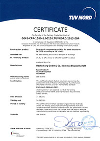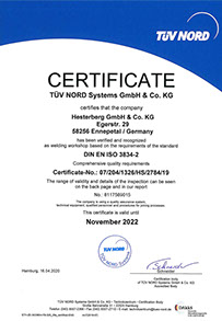 Ceci est réalisé par la certification selon la norme DIN 9001 pour l'ingénierie et la production, la qualification pour le soudage de structures en acier (DIN 18800-7) ainsi que la certification pour la conception et la fabrication de supports pour les centrales nucléaires